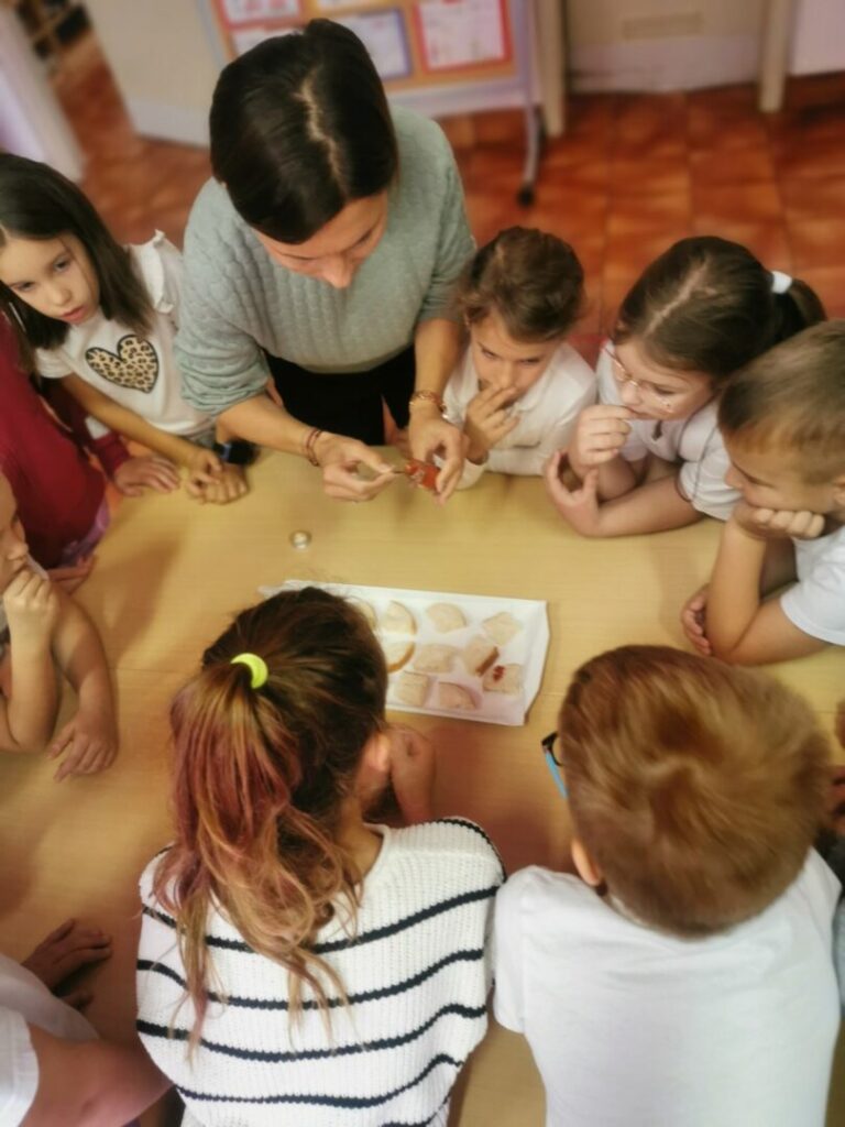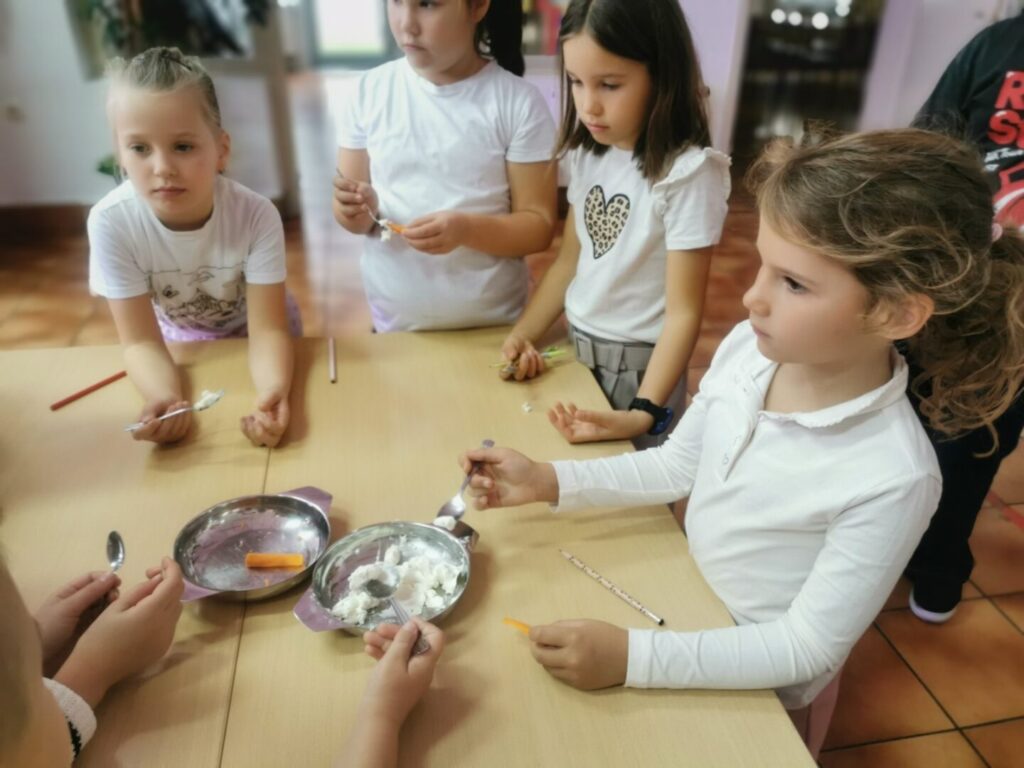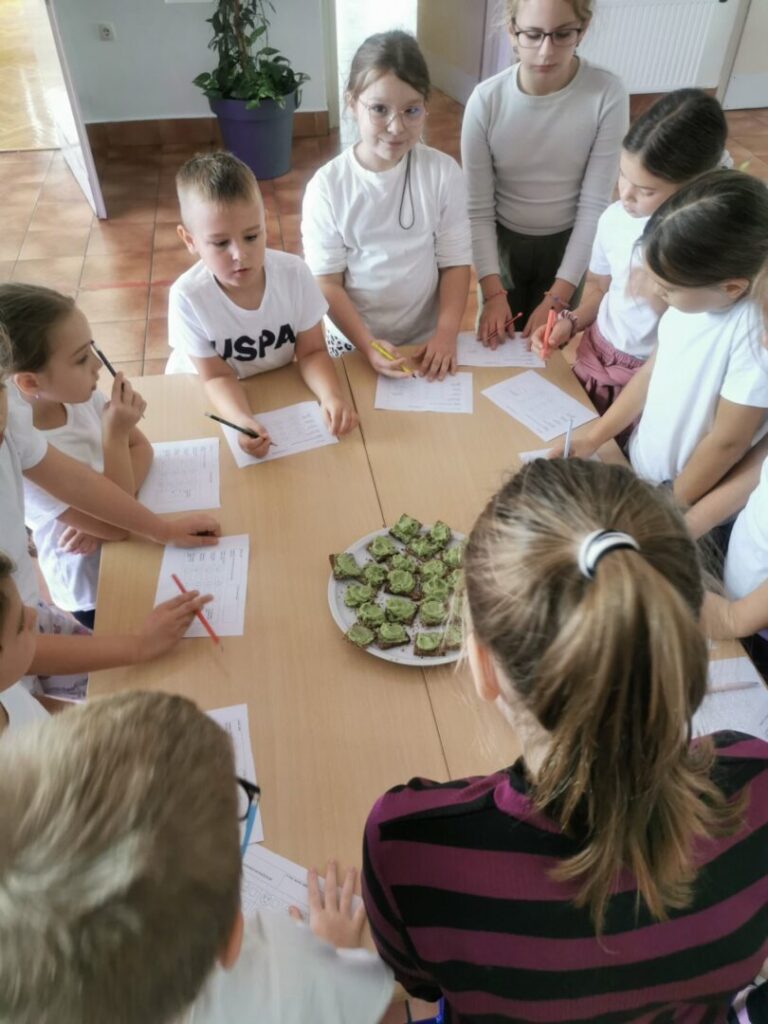 Tako su uz pomoć svojih učiteljica pripremali i jeli namaz od slanutka na raženom kruhu, a namaz od avokada su mazali na rižin kruh. Na pšenični kruh smo mazali domaću svinjsku mast i začinili slatkom začinskom paprikom. Ovaj smo jelovnik dopunili i štapićima mrkve koje smo konzumirali sa svježim mliječnim namazom. Nakon konzumiranja navedenih namaza učenici su odgovorili na kratki upitnik kojim izražavaju zadovoljstvo novim okusima. Ocjene su uglavnom bile pozitivne a posebno im se svidjelo to što su mogli izraziti svoje mišljenje o jelima koja su neki učenici prvi put probali.