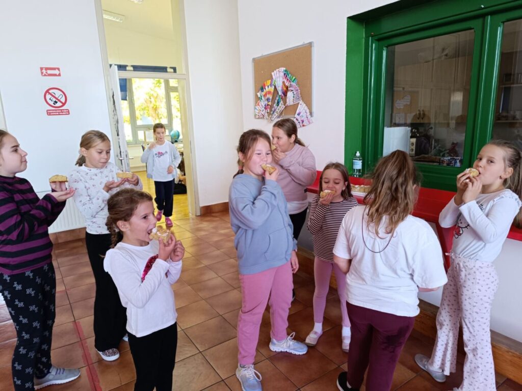 20. listopada smo obilježili još jedan važan dan – Svjetski dan jabuka i to na najukusniji način. Na satu Domaćinstva učenici su uz pomoć učiteljica pripremili ukusan kolač od jabuka. U ugodnoj i veseloj atmosferi su gulili i ribali jabuke, miješali tijesto pažljivo mjereći sve sastojke za kolač. Školskim prostorom se širio neodoljiv miris jabuka i cimeta. Sudjelovanjem su pokazali spretnost u kuhinji ali i naučili o važnosti jabuka u prehrani. Na kraju su kušali kolač i zaključili da su jabuke zdrave i ukusne svježe ali i posebno ukusne pripremljene u kolaču. (piše: učiteljica Nada Nikolić)