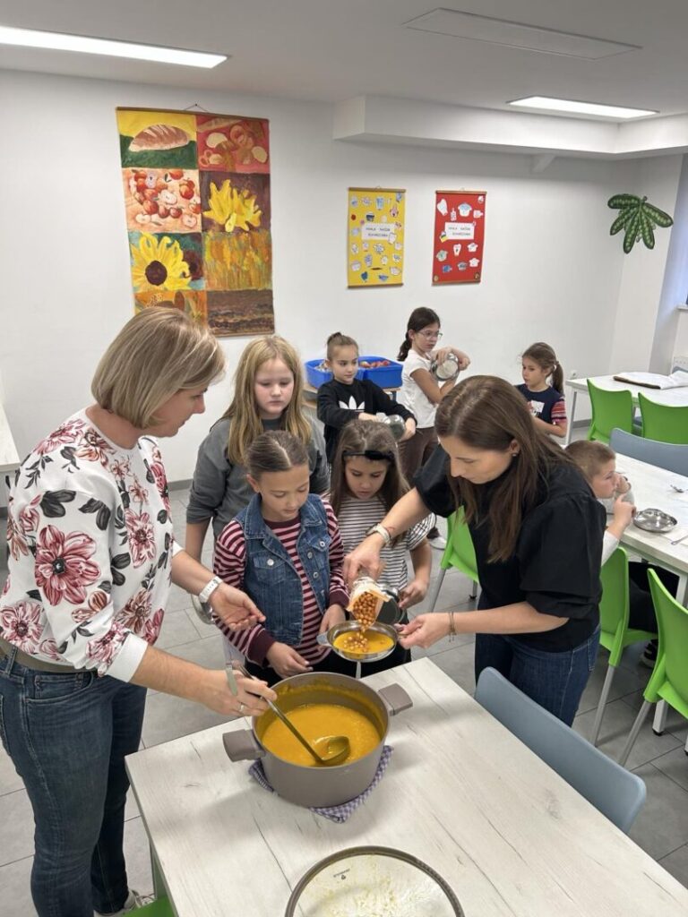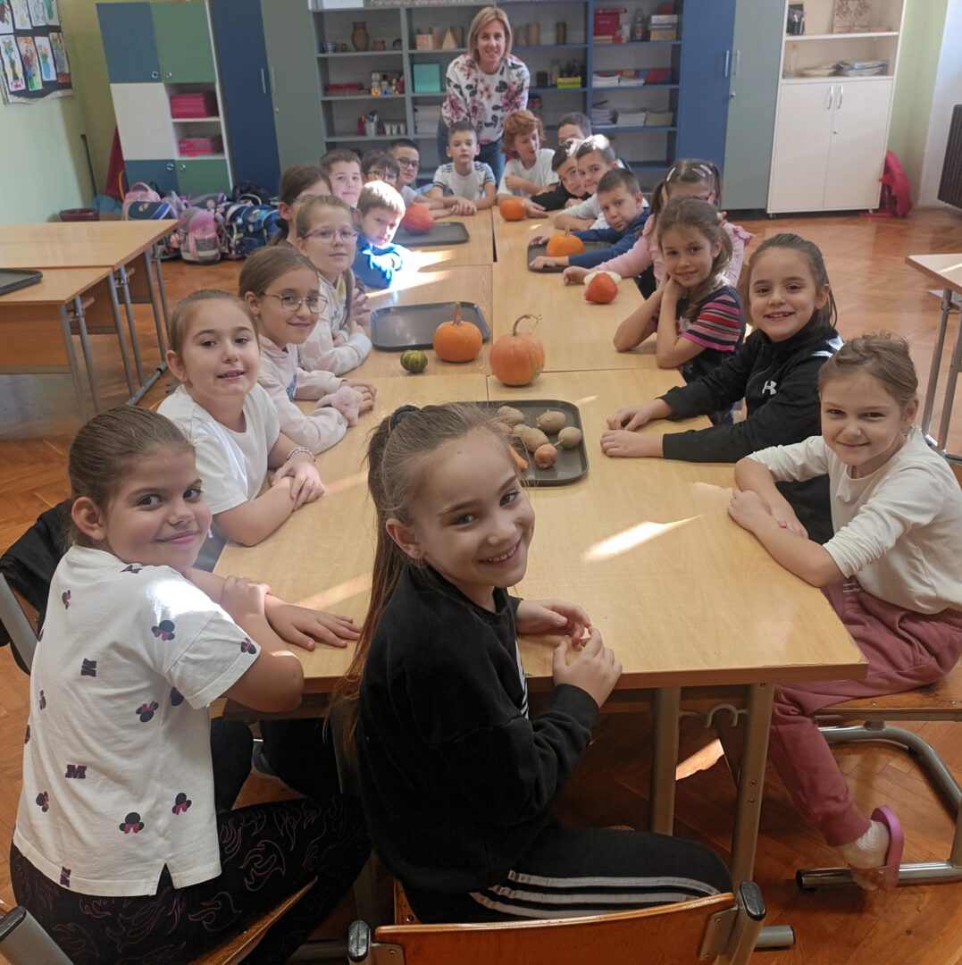 Sate domaćinstva u 2. a i 2. c razredu ovaj smo tjedan posvetili bundevi. Učenici su sa svojim učiteljicama Marijetom Grubešom i Anom Brataljenović proučavali vrste bundeve, opisivali njihov izgled, boju, miris i okus. Istraživali smo kakva se jela mogu napraviti od bundeve, te smo odlučili skuhati krem juhu. Za svoju juhu odabrali smo hokkaido i butternut, zbog njihvog primamnjivog mirisa i boje. S bundevom smo kombinirali mrkvu, luk i krumpir, koje su učenici sami ogulili, izrezali i pripremili za kuhanje. Kad se juha skuhala, učenici su uživali u zdravom bogatstvu okusa koje su sami pripremili. (piše: učiteljica Ana Brataljenović)