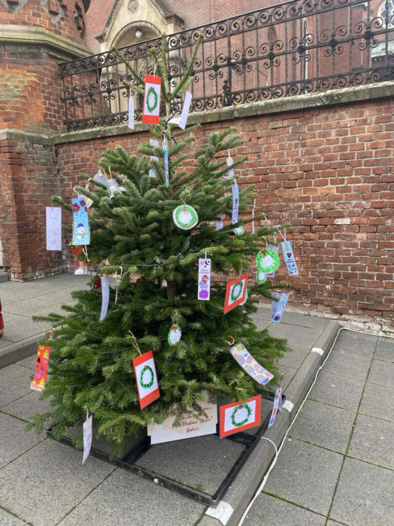 Već tradicionalno naši učenici posebnih odjela i odgojno-obrazovnih skupina u pratnji svojih učiteljica, učitelja i vjeroučiteljica ukrašavali su u petak, 12. prosinca, bor ispred katedrale. Za tu prigodu na satima vjeronauka i tehničke kulture izrađivali su ukrase. Na kraju je uslijedilo zajedničko fotografiranje. (piše: vjeroučiteljica: Martina Petrović)