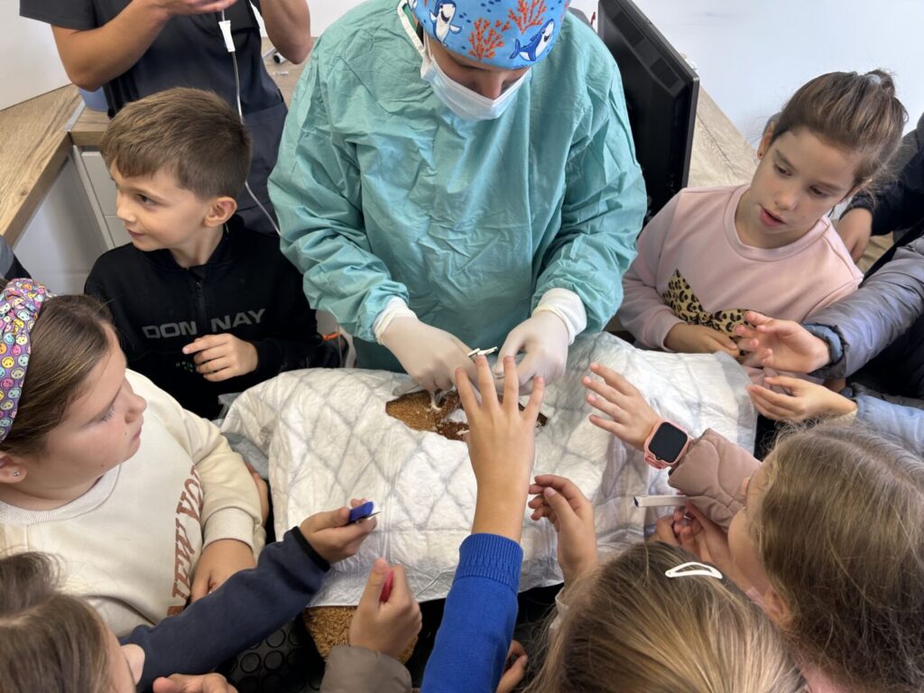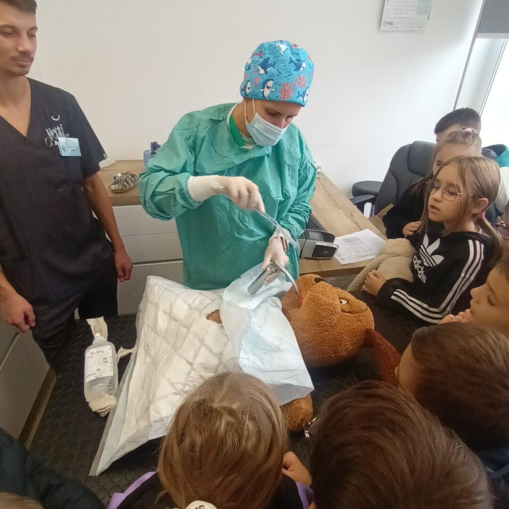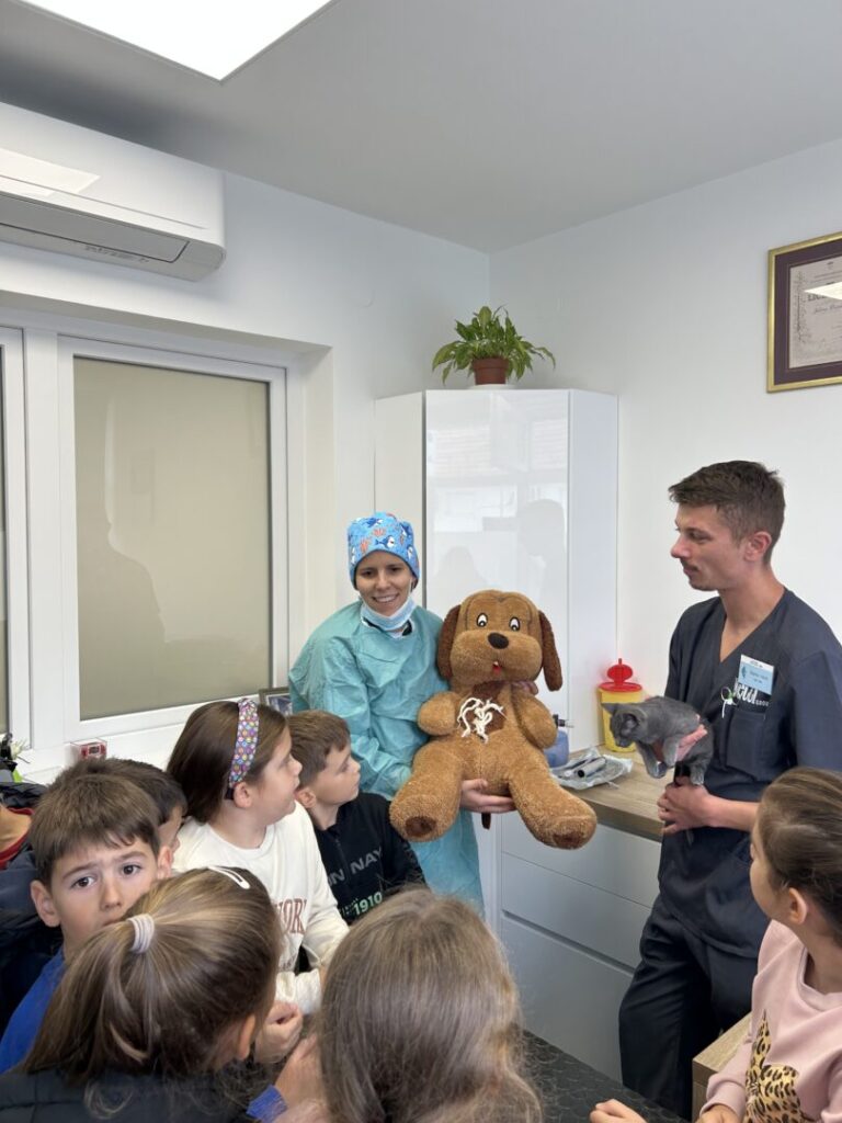 Kako bi obilježili Svjetski dan kućnih ljubimaca i dobili odgovore na brojna pitanja o brizi za svoje kućne ljubimce, učenici 2. a i 2. c razreda posjetili su Veterinarsku stanicu Đakovo. U ambulanti su nas ugostili veterinarka Jelena i tehničar Marko. Ispričali su nam na koji način pomažu našim kućnim ljubimcima i domaćim životinjama, podsjetili na odgovorno ponašanje prema njima te dali i poneki vrijedan savjet. Imali smo priliku vidjeti operacijsku salu, laboratorij, a na rendgenu smo promatrali unutarnje organe jedne mačke.