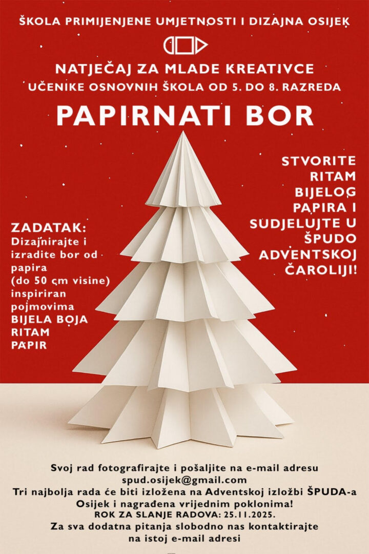 Učenici od 5. do 8. razreda sudjelovali su u natječaju Izradi bor od papira do 50cm visine inspiriran pojmovima bijela boja, ritam i papir. Natječaj je provela Škola primijenjene umjetnosti i dizajna iz Osijeka. Ovo su naši borovi: