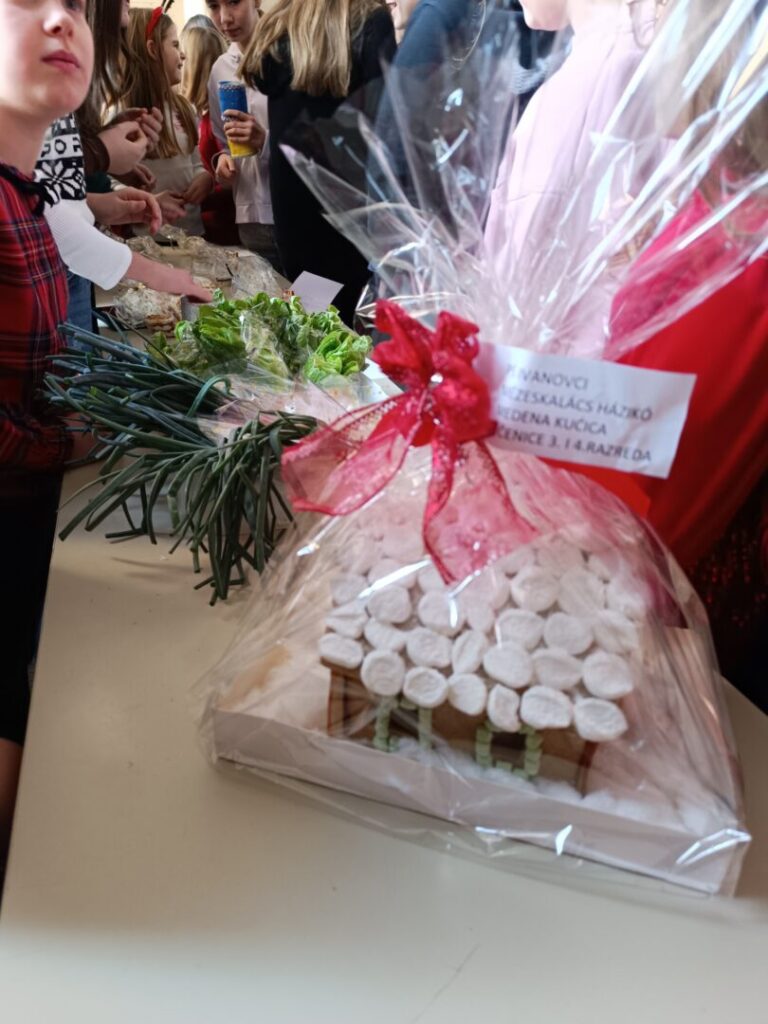 Protekli tjedan smo na satima Domaćinstva pripremali keksiće za školski sajam. Osim keksića ubrali smo luk i salatu uzgojenu u školskom smart wallu. U petak smo zapakirane proizvode ponijeli kako bi ih prodali na sajmu u prostorijama škole.