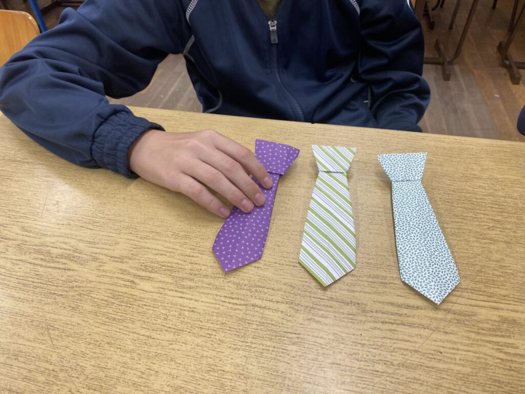 Na satu tehničke kulture 16.10.2025., a u sklopu eTwinning projekta “Imagine with Paper: Create Your Story with Kirigami and Origami!” učenici osmog razreda posebnih odjela obilježili su svjetski dan kravate savijanjem papira u obliku kravate.