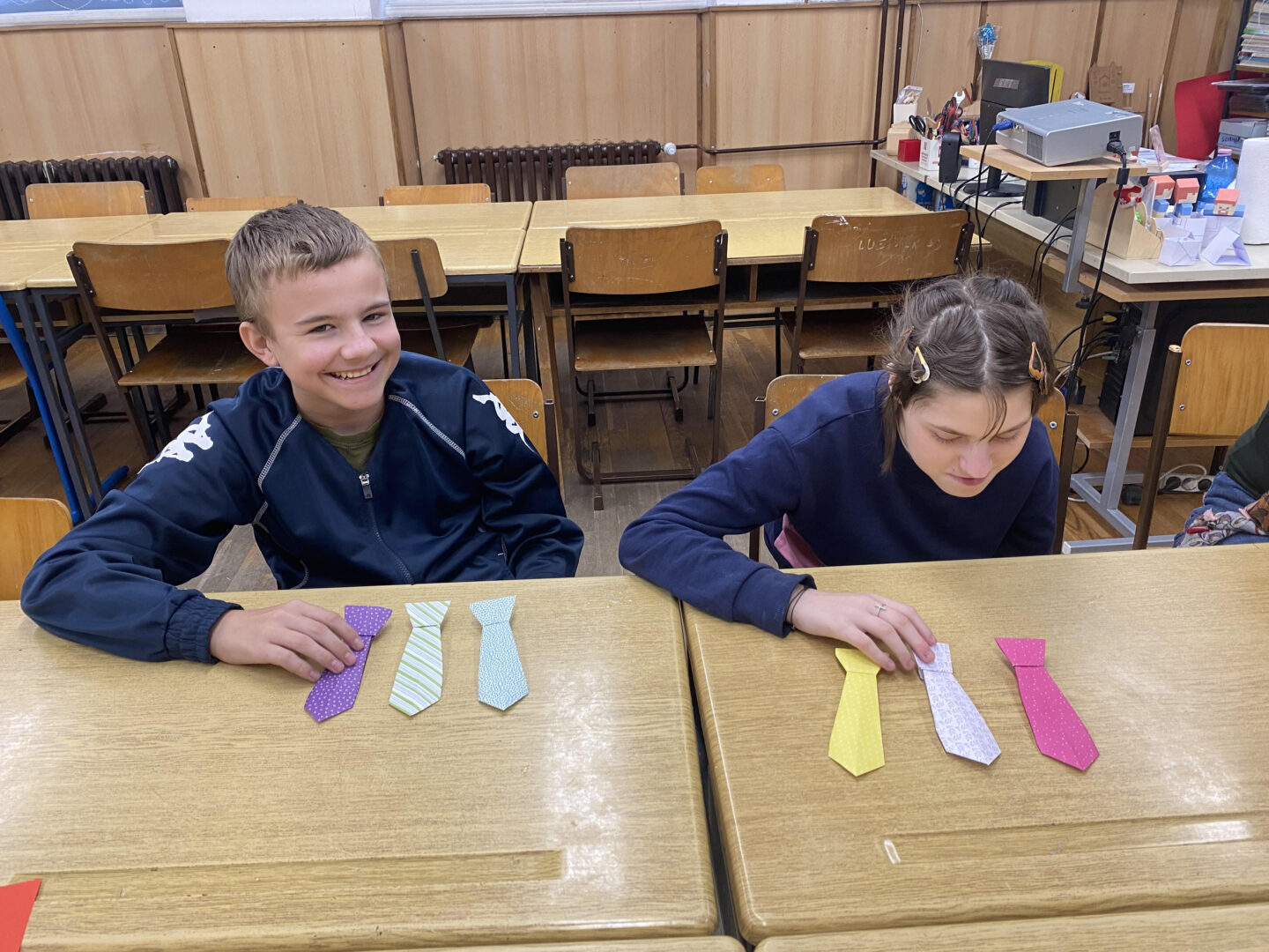 Na satu tehničke kulture 16.10.2025., a u sklopu eTwinning projekta “Imagine with Paper: Create Your Story with Kirigami and Origami!” učenici osmog razreda posebnih odjela obilježili su svjetski dan kravate savijanjem papira u obliku kravate.