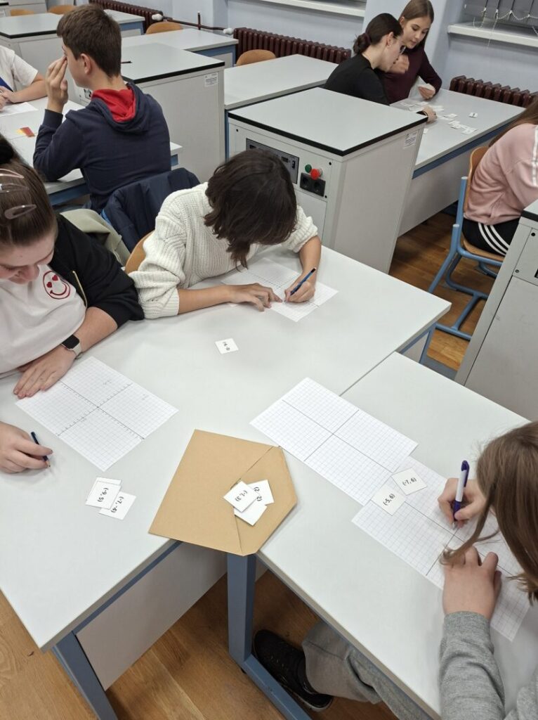 Tijekom večeri učenici su s entuzijazmom sudjelovali u raznim aktivnostima – od logičkih zagonetki i matematičkih igara do timskih izazova i kreativnih zadataka. Posebno nas veseli što su učenici istaknuli kako im se svidio drugačiji pristup matematici, koji im je omogućio da gradivo uče i uvježbavaju kroz igru, na motivirajući, zanimljiv i pristupačan način.