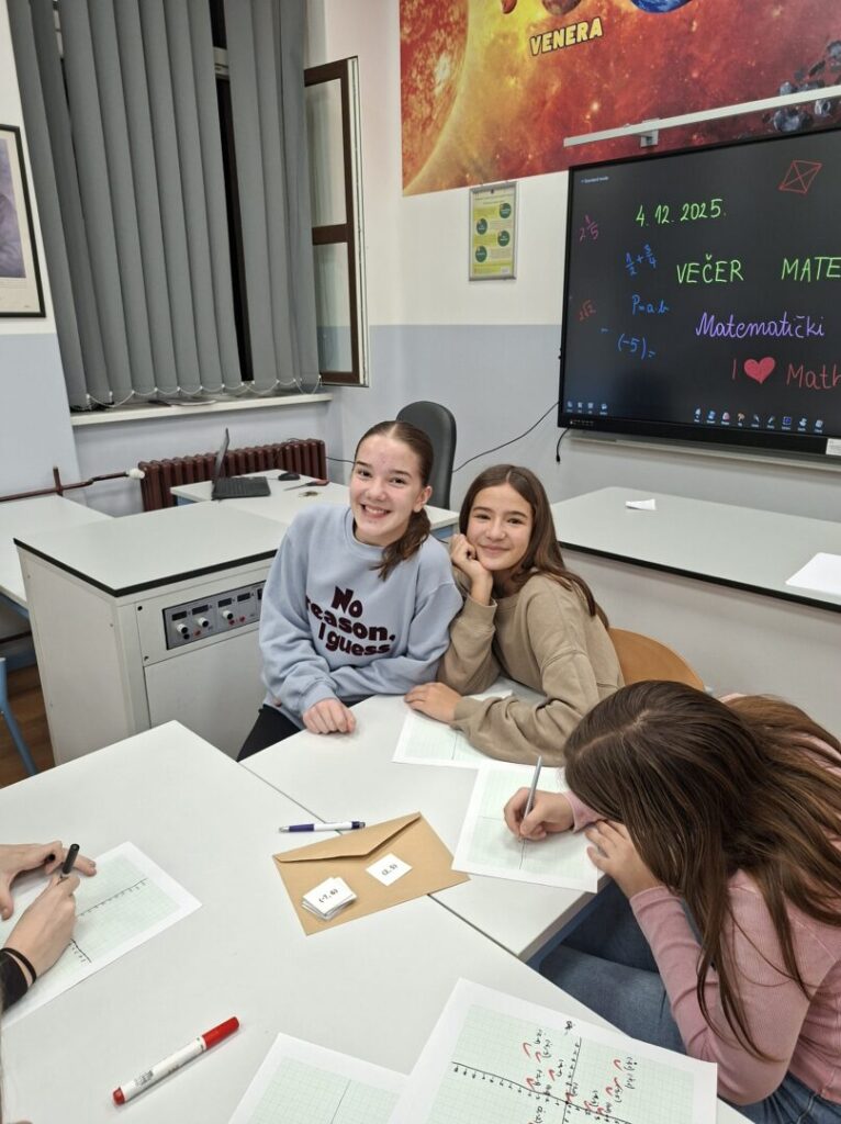 Zahvaljujemo svim učenicima koji su svojim sudjelovanjem doprinijeli stvaranju ove tople i poticajne matematičke večeri. Veselimo se novim susretima i zajedničkim avanturama u svijetu brojeva!
